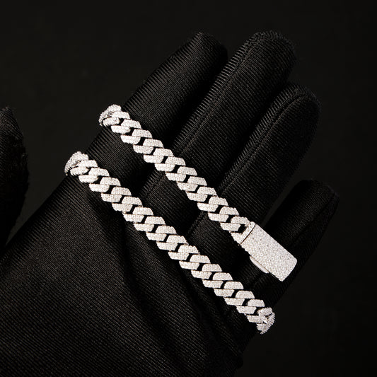 8MM 925 Silver Moissanite Prong Cuban Link Chain White Gold