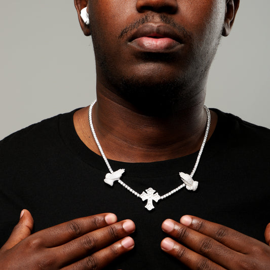 3MM 925 Silver Moissanite Tennis Chain with Cross&Praying Hand White Gold