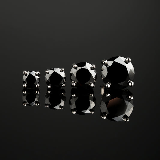 0.3Ct/0.5Ct/1Ct/2Ct S925 Silver Moissanite Black 4-Prong Round Cut Stud Earrings