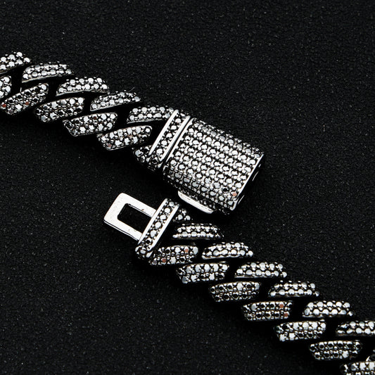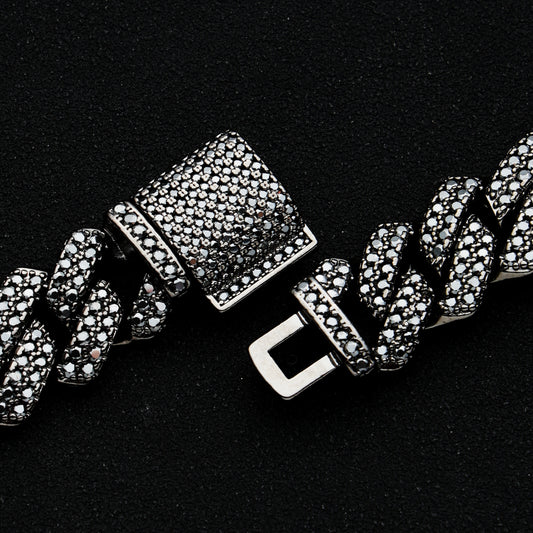 14MM 925 Silver Moissanite Prong Cuban Link Chain Black Gold