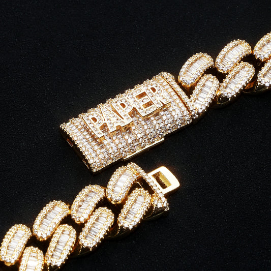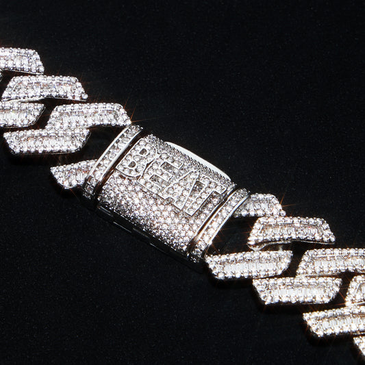 Custom 18MM Baguette Cuban Link Name Chain White Gold