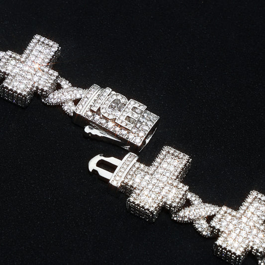 Custom 15MM Cross Infinity Link Name Chain White Gold