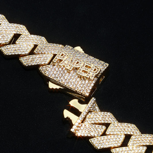 Custom 20MM Prong Cuban Link Name Chain 18K Gold