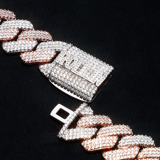 Custom 20MM Prong Cuban Link Name Chain White&Rose Gold