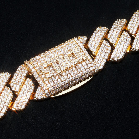 Custom 18MM Prong Cuban Link Name Chain 18K Gold