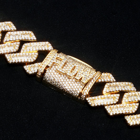 Custom 18MM Baguette Cuban Link Name Chain 18K Gold