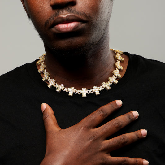 Custom 15MM Cross Infinity Link Name Chain 18K Gold