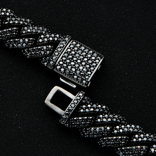 12MM 925 Silver Moissanite Prong Cuban Link Chain Black Gold