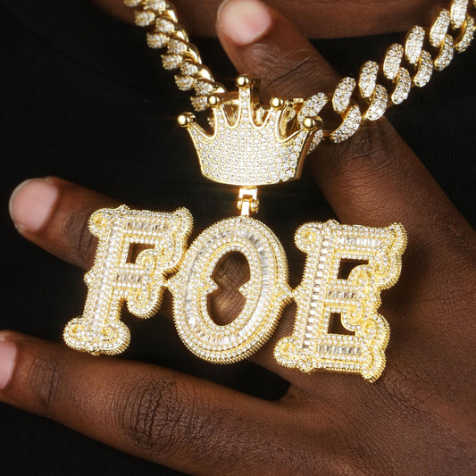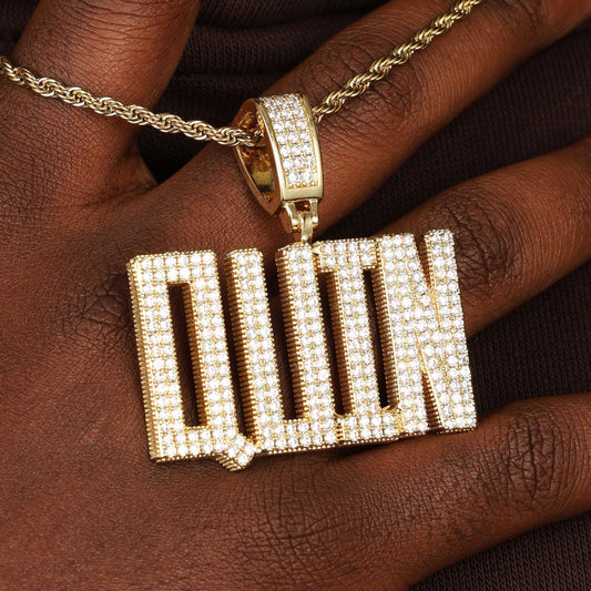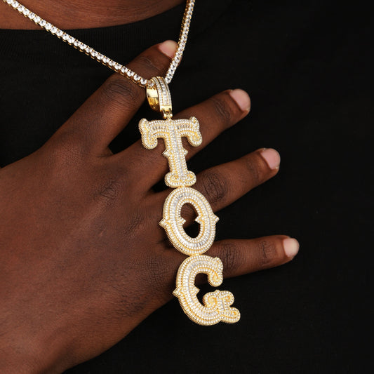 Iced Custom Baguette Letter Name Pendant 18K Gold
