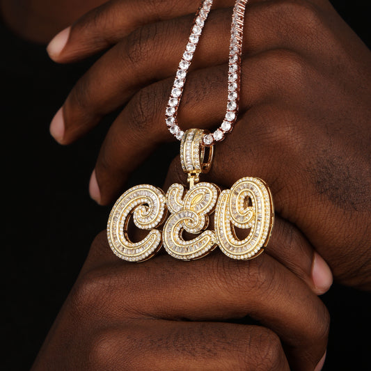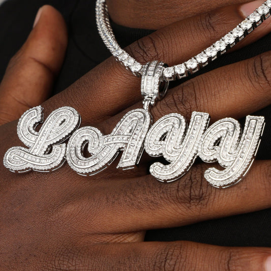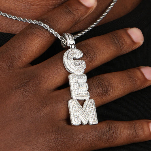 Custom Baguette Cursive Letter Name Pendant(复制)