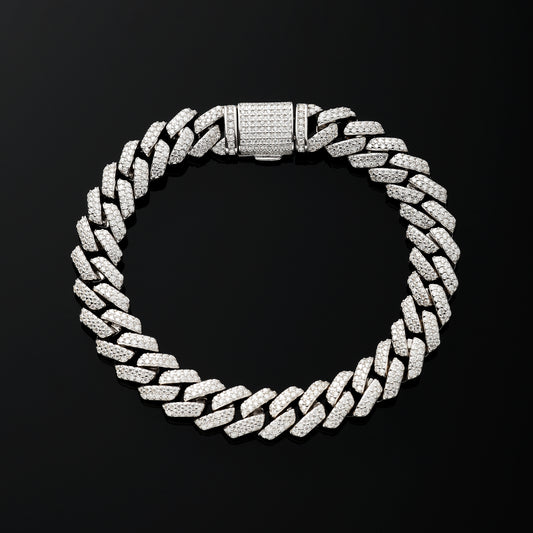 12MM 925 Silver Moissanite Prong Cuban Link Bracelet White Gold