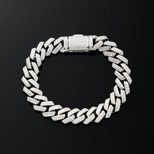 20MM 925 Silver Moissanite Prong Cuban Link Bracelet White Gold