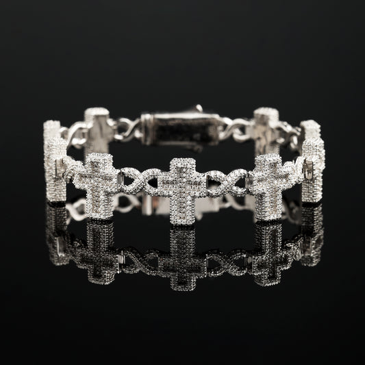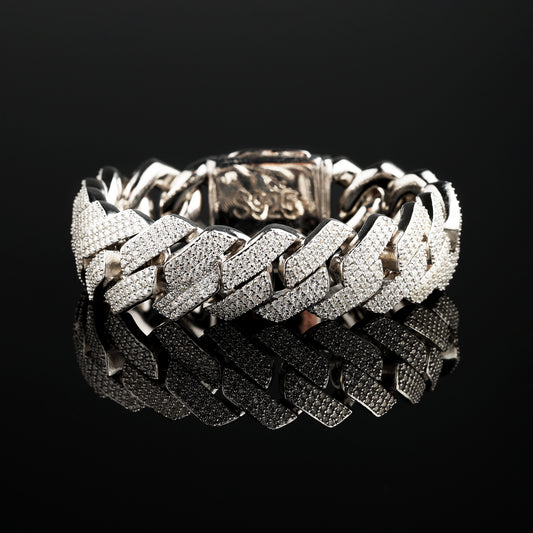 18MM 925 Silver Moissanite Cross Link Bracelet White Gold