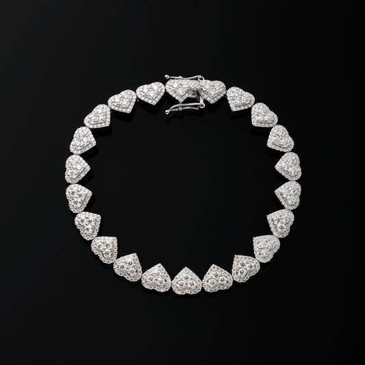 8MM 925 Silver Moissanite Heart Link Bracelet White Gold