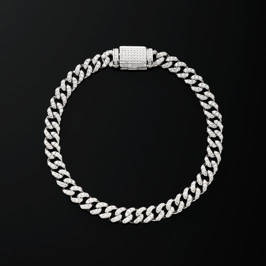 6.5MM 925 Silver Moissanite Cuban Link Bracelet White Gold