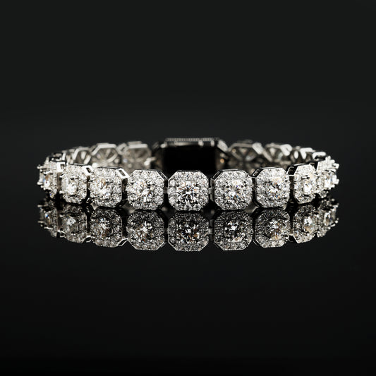 10MM 925 Silver Moissanite Cluster Tennis Bracelet White Gold