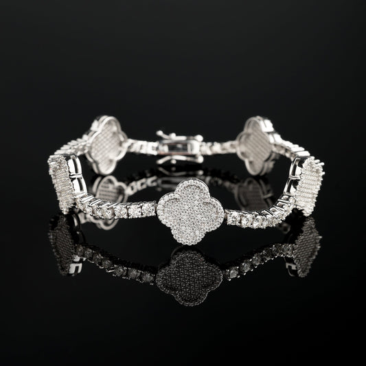 3MM 925 Silver Moissanite Four Leaves Bracelet White Gold