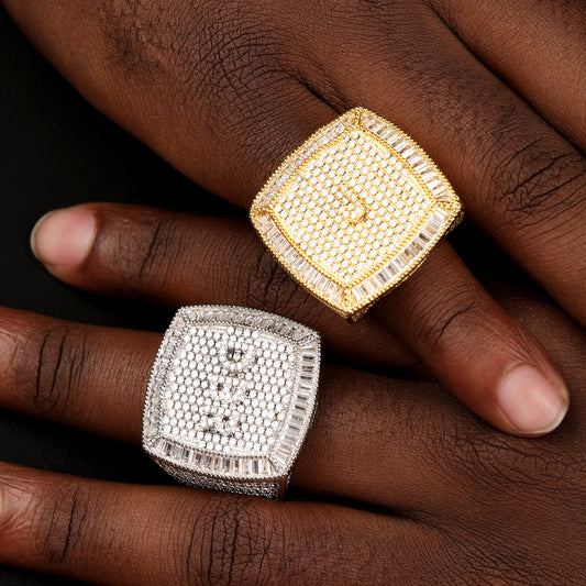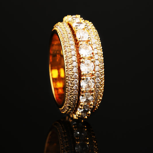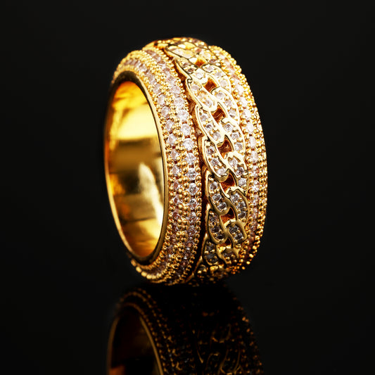 CZ Stone Iced Rotatable Cuban Ring in 18K Gold