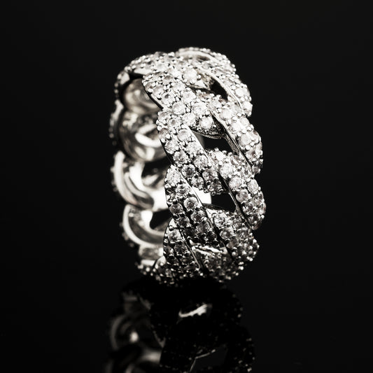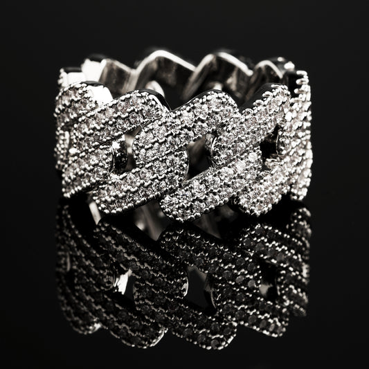 CZ Stone Micro-Inlay Cuban Link Ring White Gold