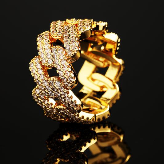 CZ Stone Micro-Inlay Cuban Link Ring 18K Gold