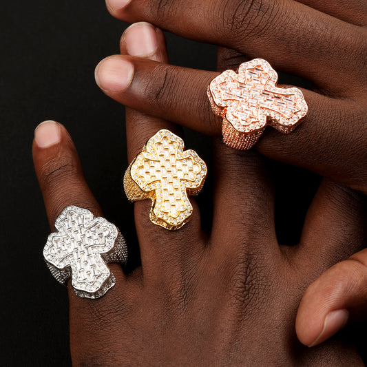 CZ Stone Iced Cross-Shaped Baguette Ring