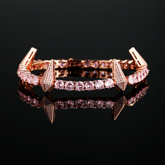 5 毫米玫瑰金粉色斗牙爪网球手链