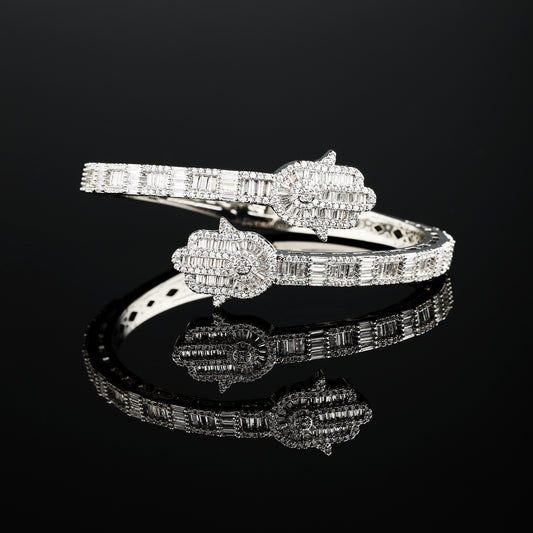 Hamsa Hand Bauguette 手链 白金