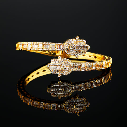 Hamsa Hand Bauguette 手链 18K 金