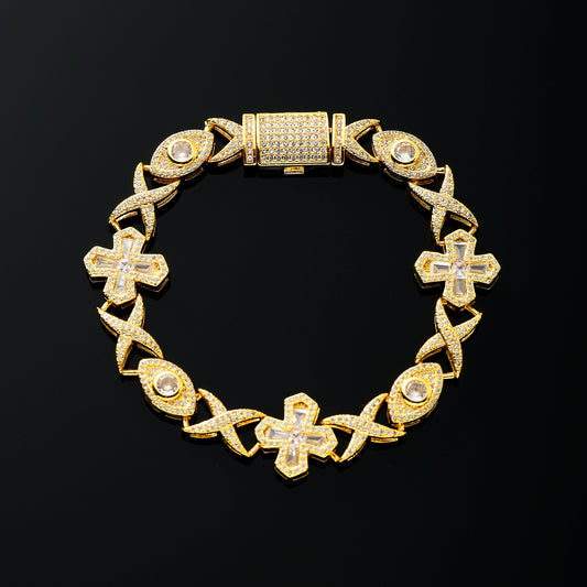 16MM 恶魔之眼和十字架手链 18K 金