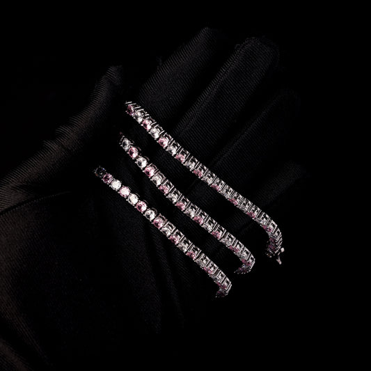 4mm 粉色和白色宝石网球链