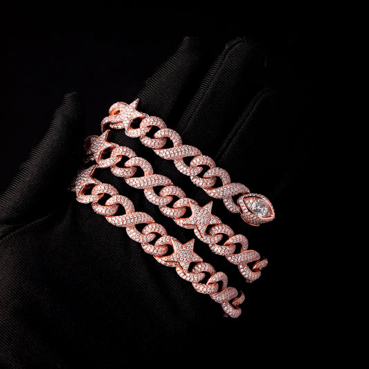 13 毫米星星和恶魔之眼古巴链 玫瑰金