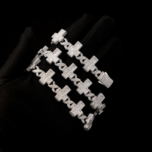 15 毫米 925 银莫桑石十字架无限链环 白金