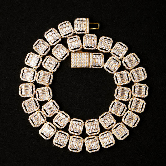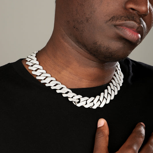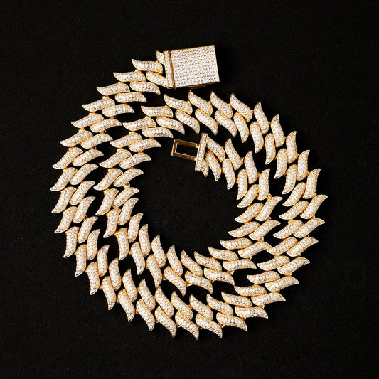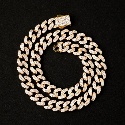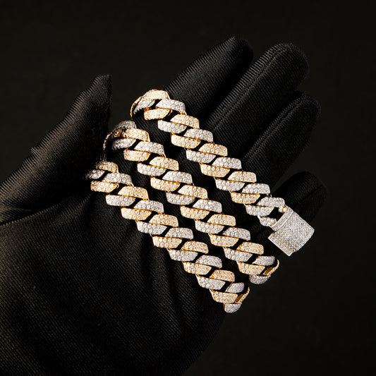 14 毫米 925 银莫桑钻爪镶古巴链 白金