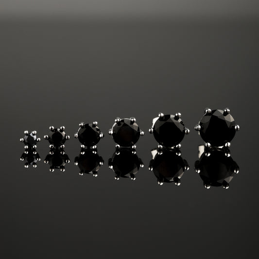 CZ 宝石 6 爪圆形切割耳钉 黑色宝石