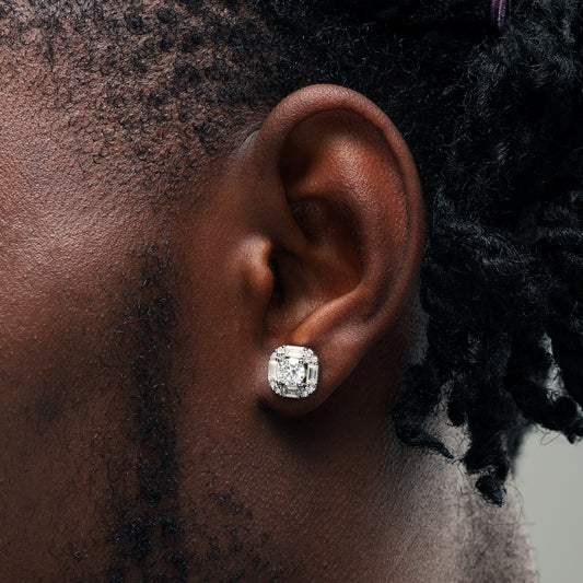 10 毫米 925 银莫桑石长方形耳钉 白金