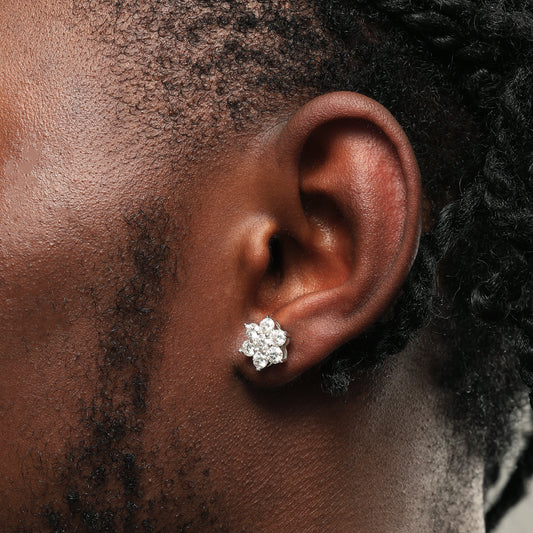 10 毫米 925 银莫桑石簇花耳钉 白金