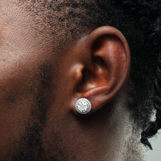 2.00 克拉 925 银莫桑石光环耳钉 白金