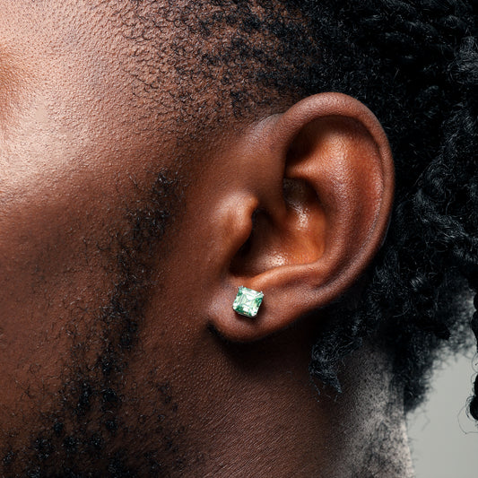 6 毫米 925 银莫桑石蓝绿公主方切割耳钉 白金
