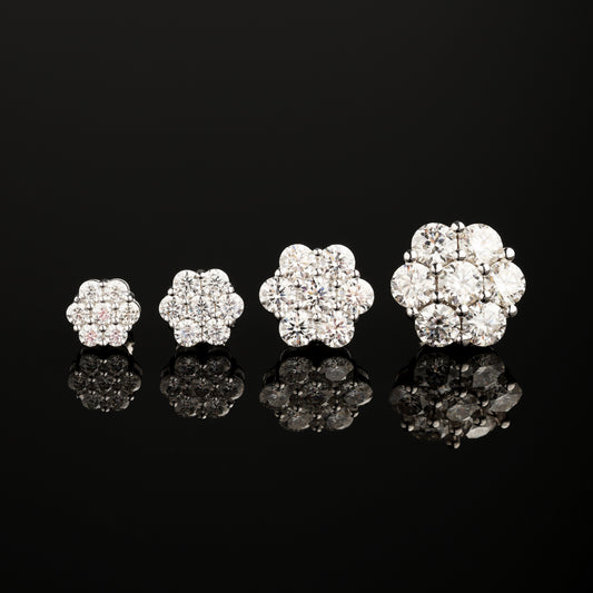 9 毫米/10 毫米/12 毫米/15 毫米 925 银莫桑石簇花耳钉 白金