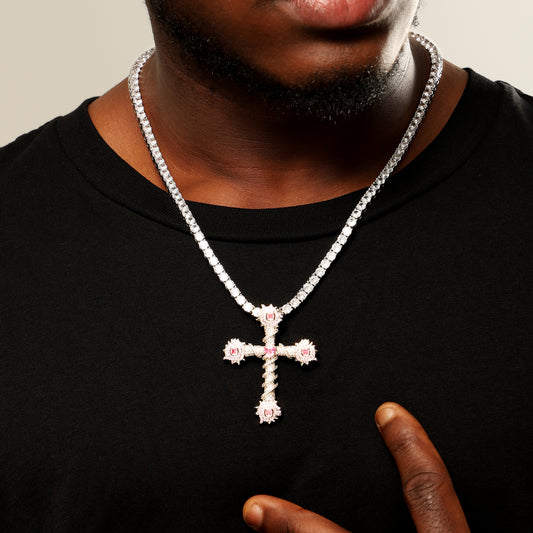 冰粉色心形荆棘十字架吊坠
