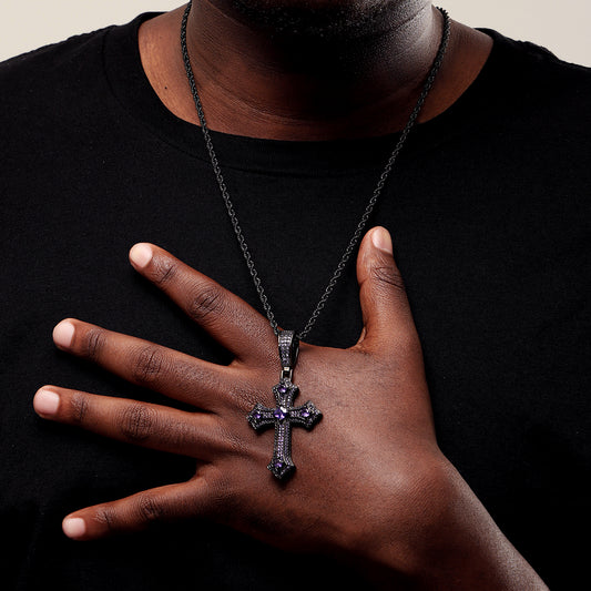 黑金冰紫公主方形十字架吊坠